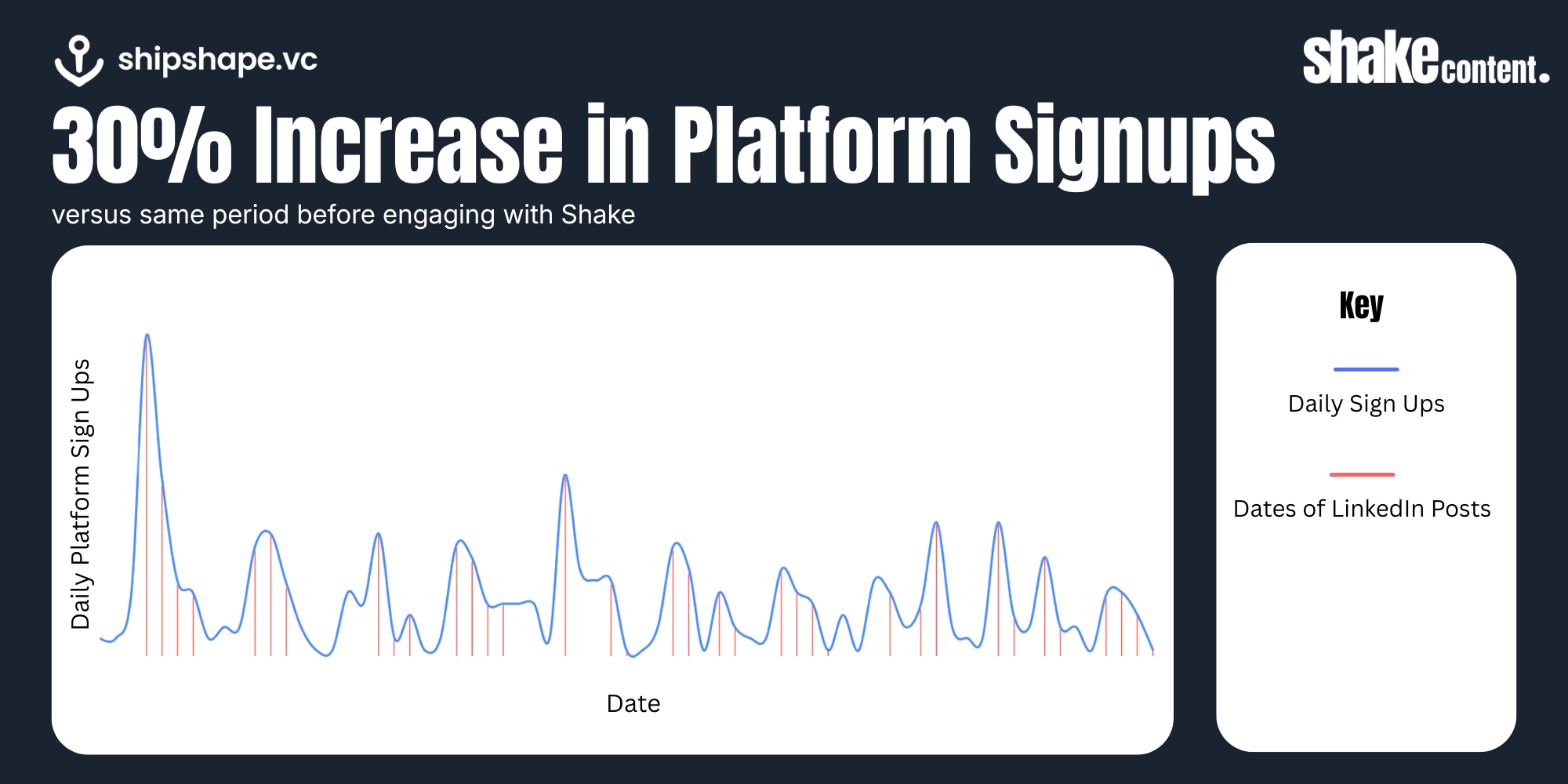 Most importantly, this increased visibility translated into meaningful commercial outcomes. As Dan from Shipshape noted, the period working with Shake Content delivered a 30% uplift in signups compared to the 62-day period prior.